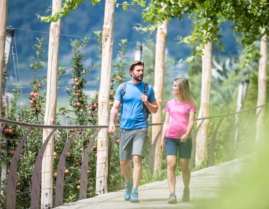 Genusswanderungen entlang von Wasserläufen, vorbei an Apfelbäumen und Weinreben. Im Meraner Land finden Sie verschiedene Waal- und Erlebniswege die ideal sind für die ganze Familie.