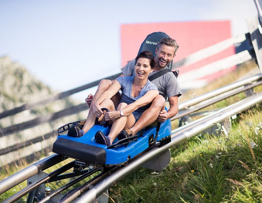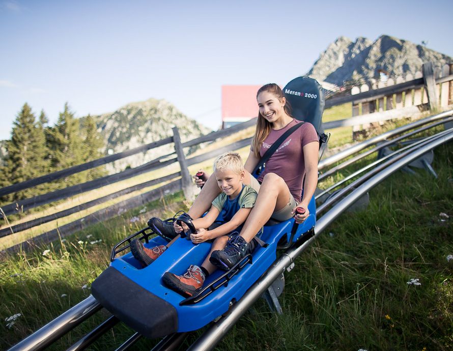 Auf Meran 2000 erwartet Sie ein besonderes Erlebnis: die Sommerrodelbahn "Alpin Bob" für eine Fahrt voller Nervenkitzel, Spaß und Adrenalin.