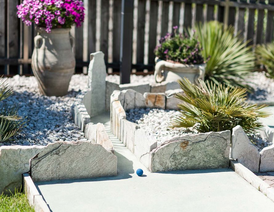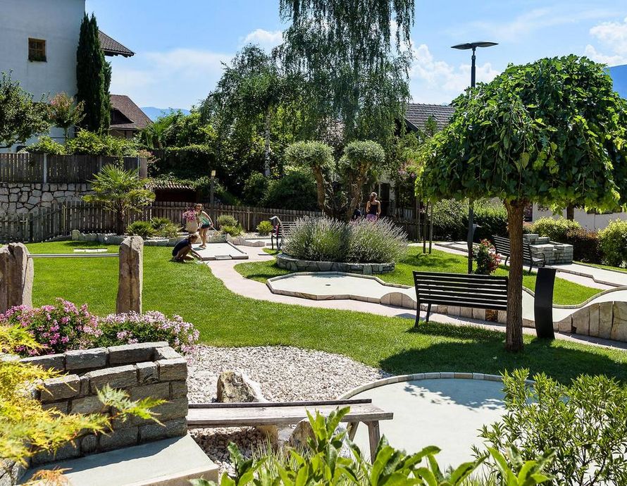 Auf 18 ungewöhnlichen, individuell gestalteten Minigolfbahnen aus Beton und Stein, mit kreativen Hindernissen bietet der Minigolf Schenna ein besonderes Urlaubserlebnis. Spannend, unterhaltsam und aufregend – ein Freizeitspaß für die ganze Familie.