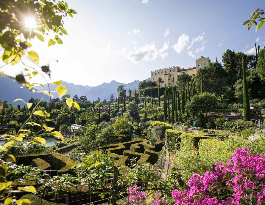 Die Gärten von Schloss Trauttmansdorff zählen zu den schönsten Gartenanlagen Europas. Auf 12 Hektar können die Besucher über 80 verschiedene Gartenlandschaften bestaunen. Viele Erlebnisstationen, Themengärten und Künstlerpavillons machen eine bunte Erlebniswelt für Jedermann. Wem die Pflanzenwelt etwas zu ruhig ist: es lassen sich auch eine vielzahl an Tieren in Trauttmansdorff bestaunen! Pfauen, Kaninchen, Zackelschafe und Zwergziegen, Aaras, Japanische Karpfen und noch viele andere Tiere.